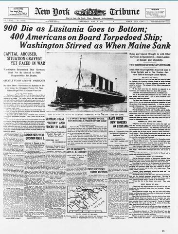 AND THEN CAME MAY 7th, WHEN THE LUSITANIA WAS TORPEDOED AND SUNK.